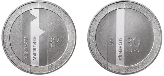 Menjam srebrnik izdan 2021 ob 30. obletnici državnosti Republike Slovenije za srebrnik izdan 2021 ob 300. obletnici Škofjeloškega pasijona.