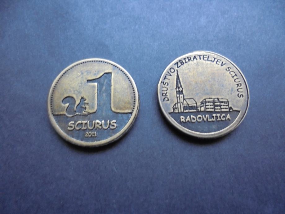 Kovanec 1 sciurus 2011 bakren NI plačilno sredstvo,izdalo društvo zbirateljev SCIURUS Radovljica,naklada 500 kovancev,...