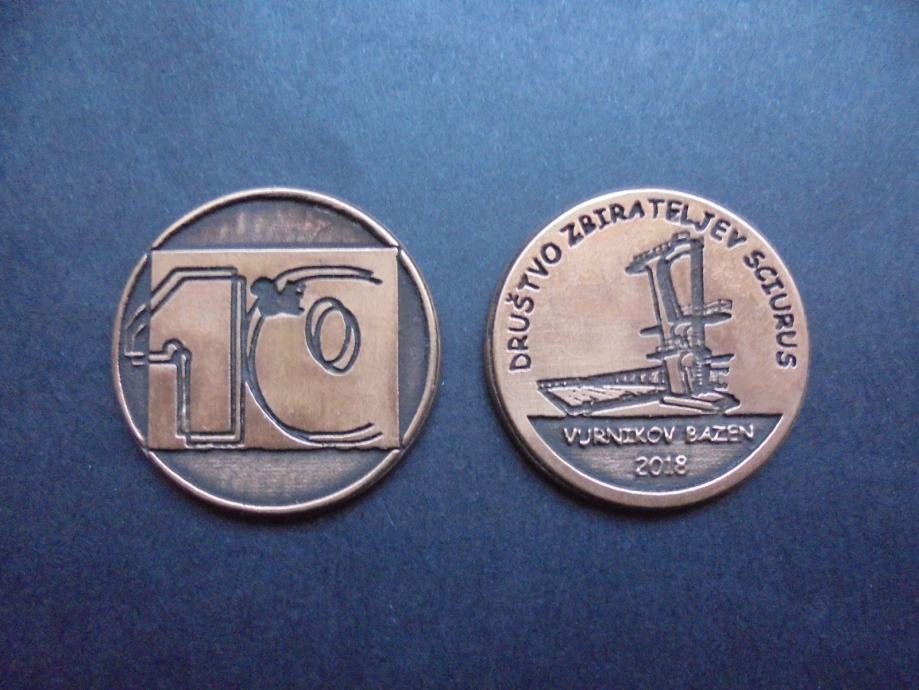 Kovanec 10 sciurus 2018 bakren NI plačilno sredstvo,izdalo društvo zbirateljev SCIURUS Radovljica,naklada 100 kovancev,...