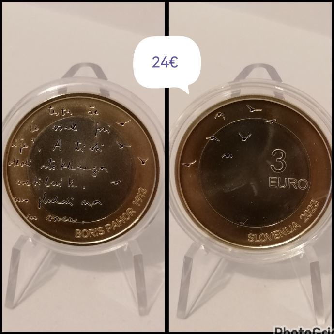 Slovenija 3 euro 2023 Boris Pahor PROOF v original kapsuli z naklado 1250