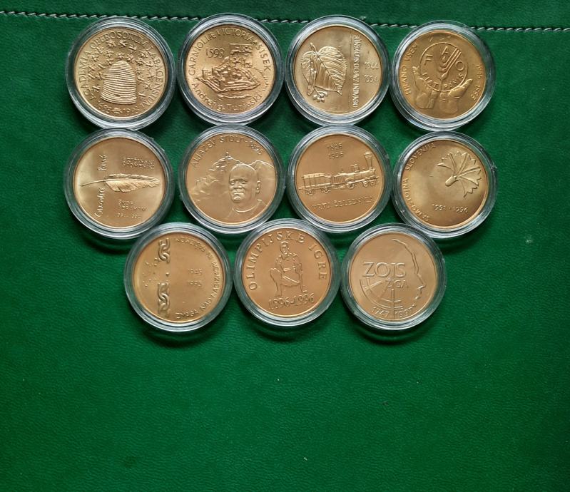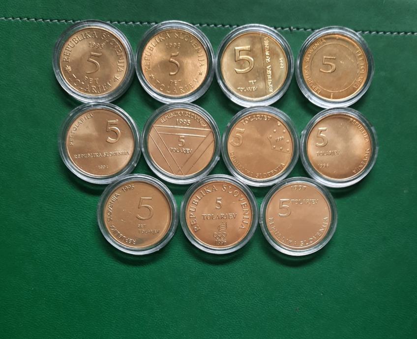 Prodam vseh enajst izdanih spominskih kovancev 5 tolarjev. UNC