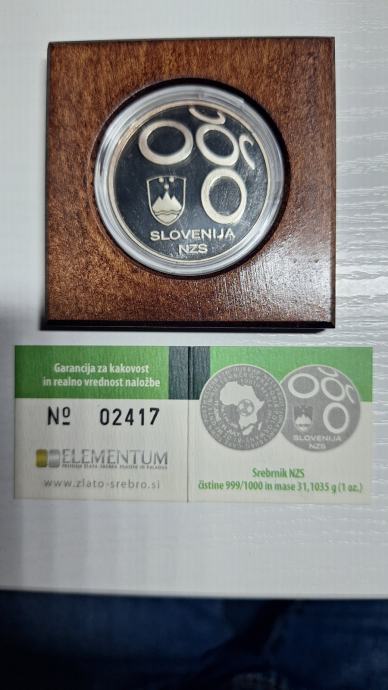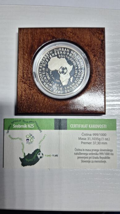 Srebrnik NZS, izdan ob udeležbi nogometne reprezentance Slovenije na svetovnem prvenstvu v Južni Afriki leta 2010. Teža srebrnika je 32 g. Za garancijo kvalitete je izdan certifikat kakovosti.