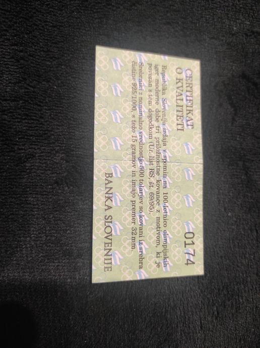 Srebrnik 100 let olimpijskih iger z certifikatom v original embalaži cena 55€