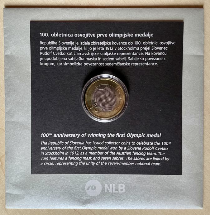 Prodam zbirateljski kovanec za 3 €, izdan leta 2012 ob 100. obletnici osvojitve prve olimpijske medalje.