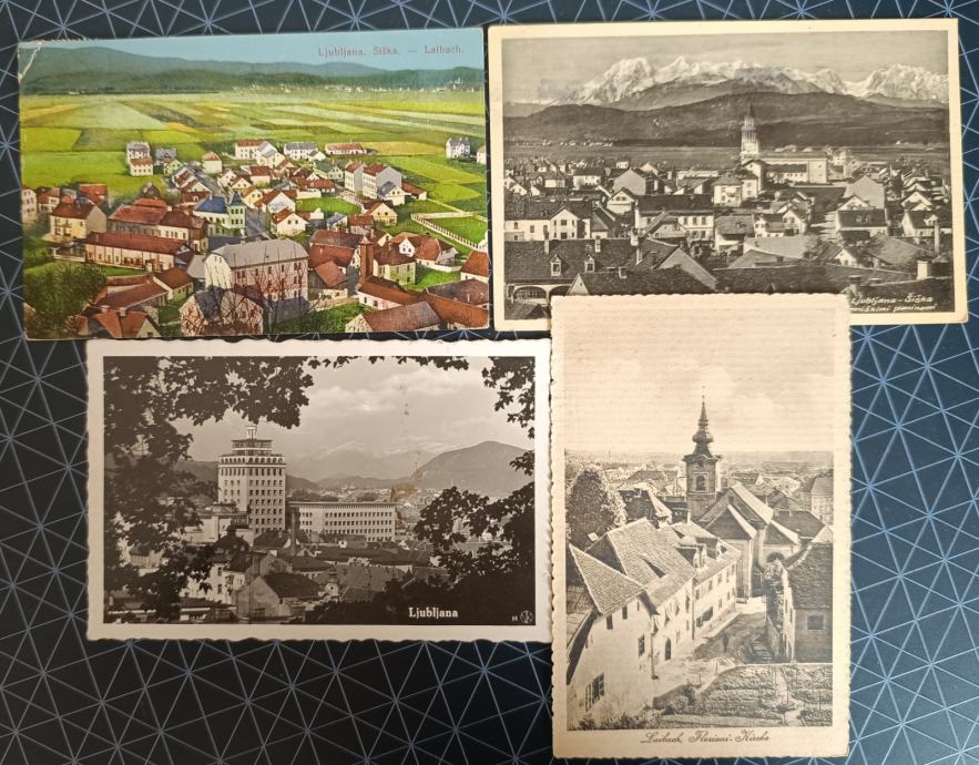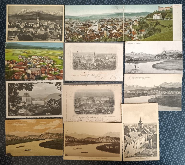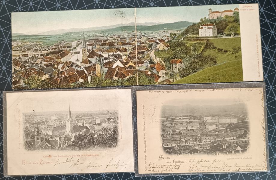 Ljubljana razgled z gradu - dvojna razglednica, Ljubljana s Kamniškimi planinami, Laibach mit Steiner Alpen, ljubljanski grad, Laibach von Schlossberg, Gruss aus Laibach, St. Jakobskirche, A. Turk, Šiška, ljubljanski nebotičnik, Floriani kirche, Ljubljana, Laibach, k.u.k. cenzura, ww1, slovenske razglednice, stare razglednice, avstroogrske razglednice, razglednice iz Kraljevine, vintage razglednice ...