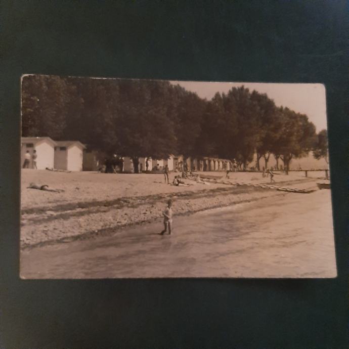 Stara razglednica plaže v Ankaranu. Ohranjena.