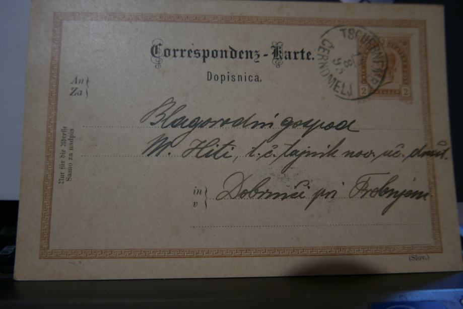 Prodam zelo dobro ohranjeno dopisnico, poslano iz Črnomlja, avgusta 1895. Kupec plača poštnino.