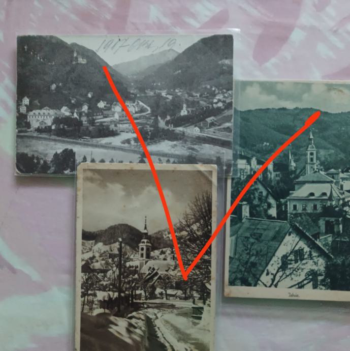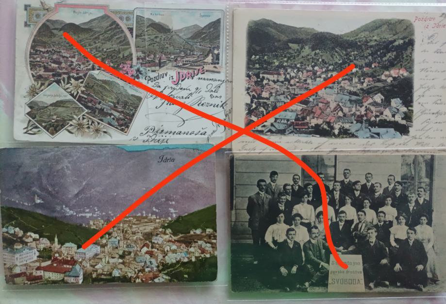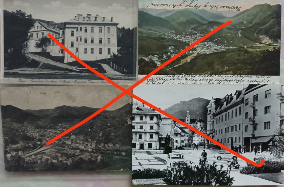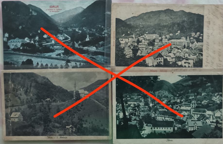 Naprodaj je 32 razglednic Idrije, vse razen štirih so bile poslane pa še te imajo zadaj napise. Cene se v večini gibljejo med 8 in 30 eur, ena je 35, ena 40 in litografija 55 eur.
