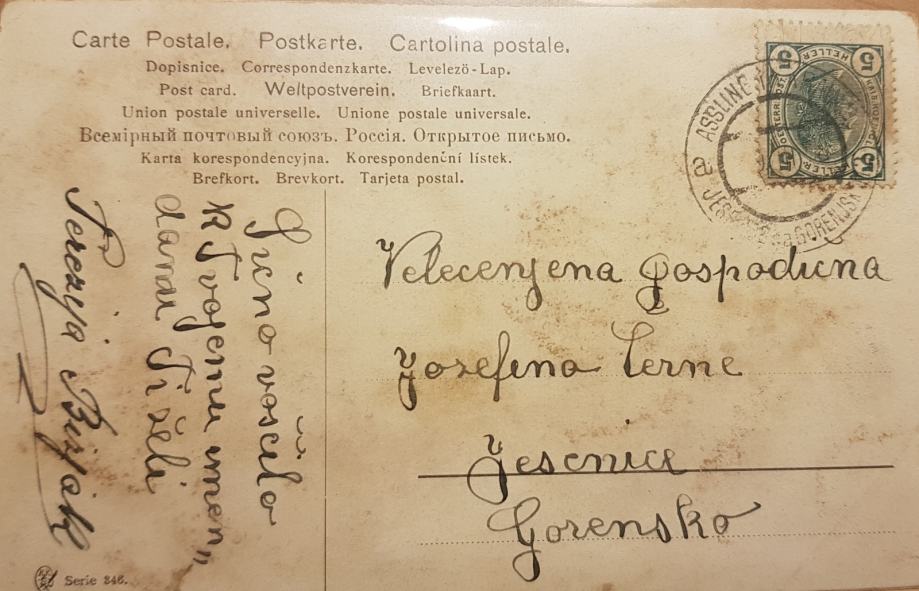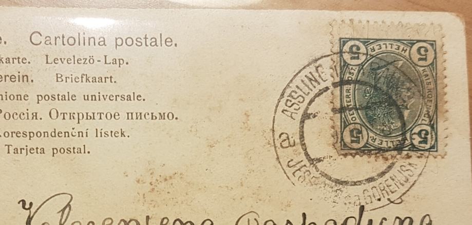 ČESTITKA, ŽIG JESENIC PRED LETOM 1918-V AVSTROOGRSKI, NAROBE OBRNJENA ZNAMKA-REDKO