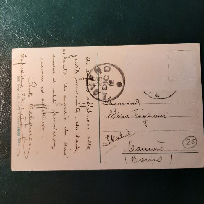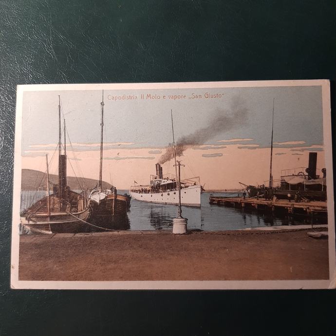 Razglednica Kopra, pomol z parno ladjo, poslana leta 1912. Dobro ohranjena.