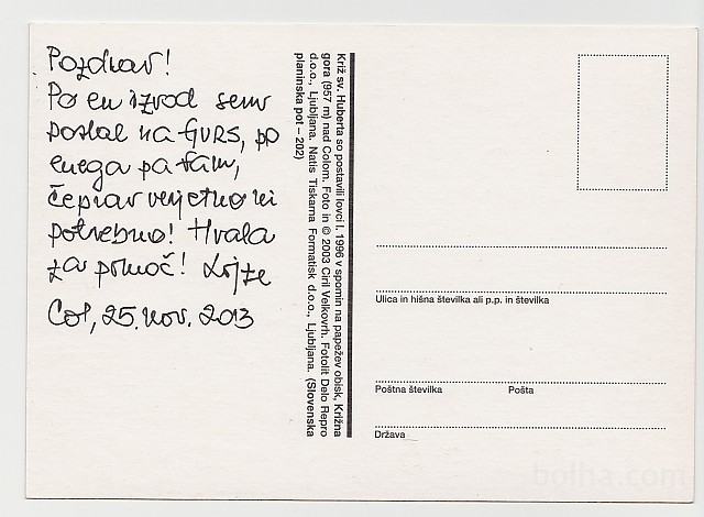 Križ sv. Huberta, ki so ga postavili lovci. Kupec plača poštnino.