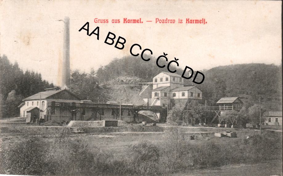 Krmelj, 1923, Gruss aus Karmel, Pozdrav iz Karmelj, tovarna, Dolenjska