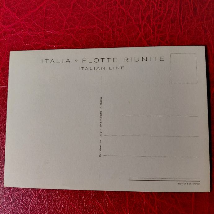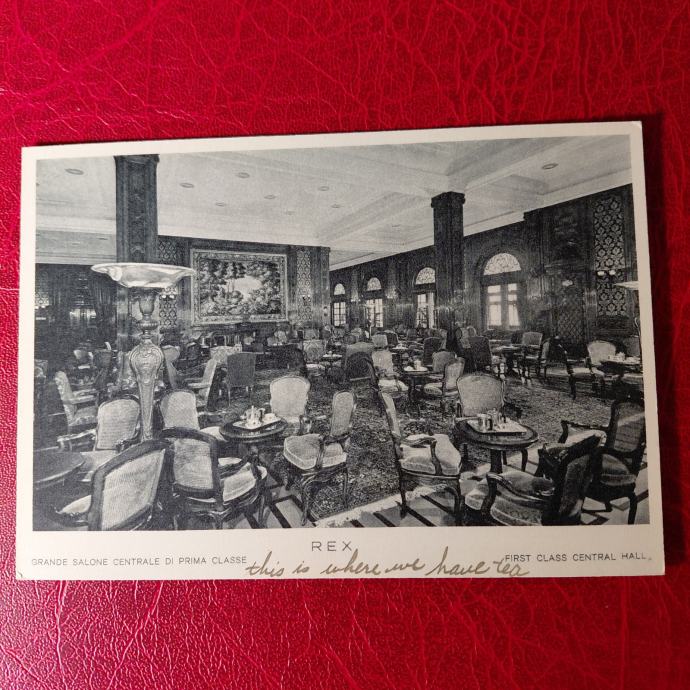 Stara razglednica potniške ladje Rex, takrat najmodernejše in najhitrejše ladje na svetu, potopljene leta 1944 pri Kopru. Ni potovala.