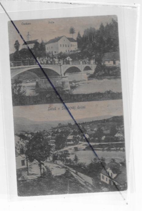 Razglednica Letuša v Savinjski dolini je bila poslana, je brez znamke, ima pa žig pomožne pošte Letuš (Rečica).