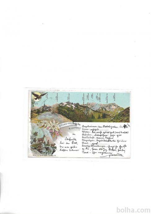 Prodam litografijo Svetih Višarjev, pisana poslana z odhodnim in prihodnim žigom.