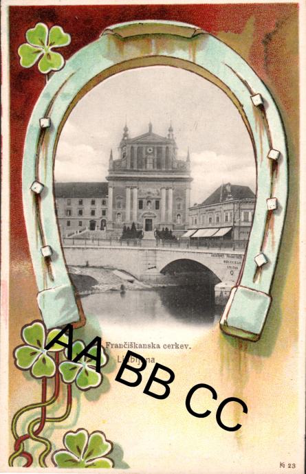 Ljubljana Frančiškanska cerkev ok. 1900 Vaso Petričič podkev secesija
