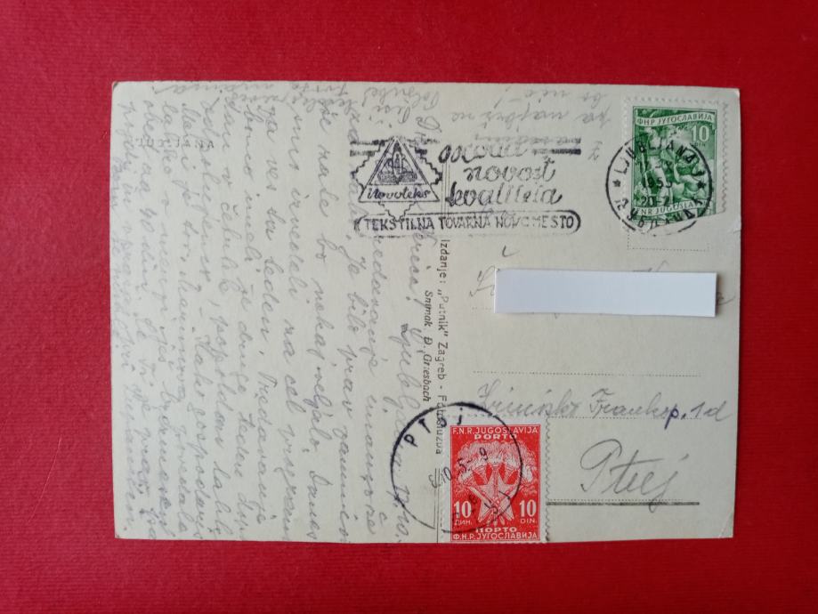 Ljubljana,spomenik,kolesarji.Strojni žig Novoteks,Novo mesto,T porto