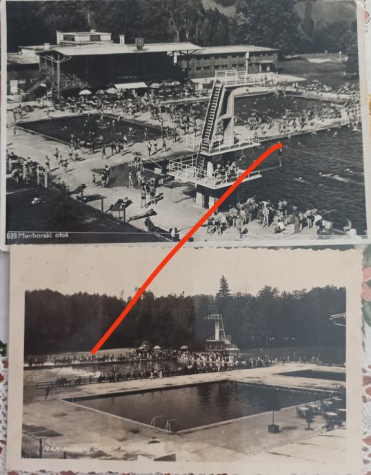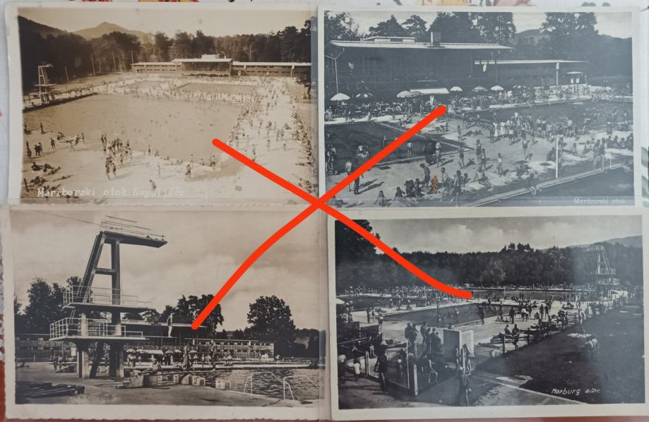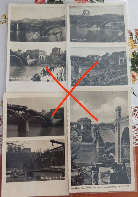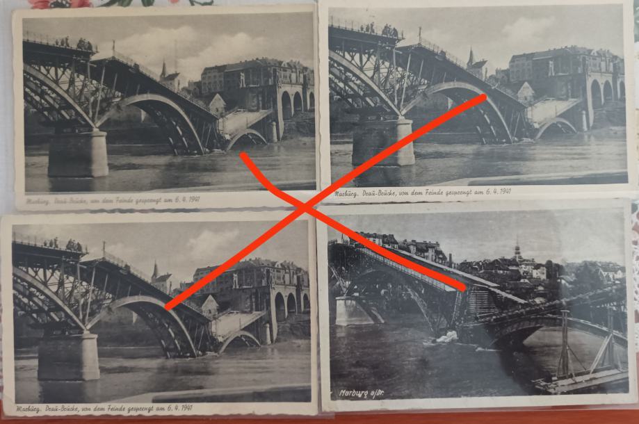 Naprodaj so videne razglednice kopališča in porušenega mostu. Cene se gibljejo med 8 in 15 eur za kos.