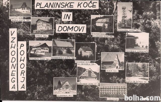 razglednica POHORJE planinske koče in domovi vzhodnega Pohorja, Potovala 1958. Poštnino plača kupec.