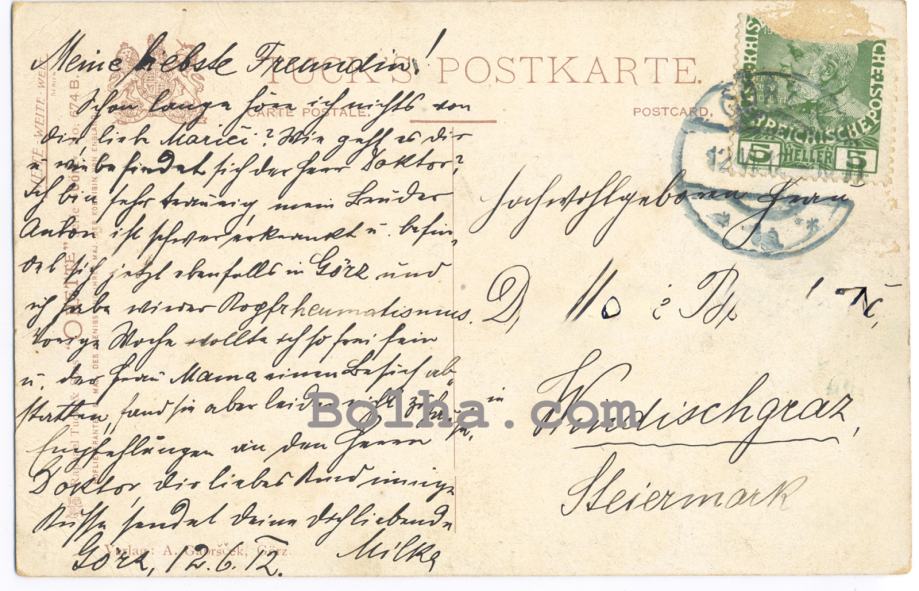 Potovala iz Gorice 12.06.1912 v Slovenj Gradec