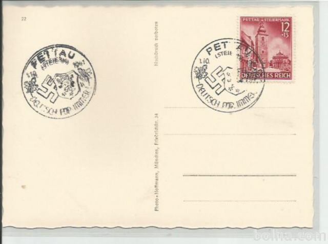 Propagandna razglednica z znamko in žigom Pettau - Ptuj DEUTSCH FUR IMMER