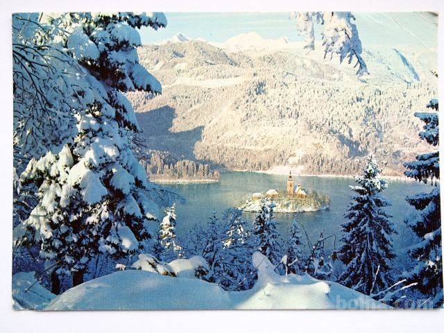 Razglednica BLED, zimska idila, potovala 1969 z znamko.