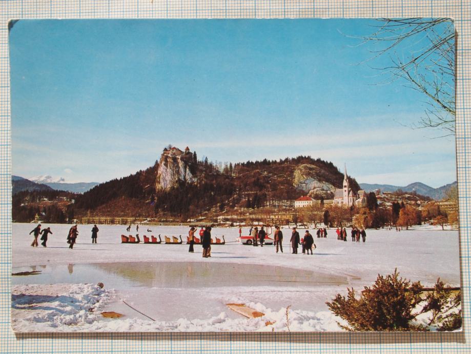 Razglednica BLED pozimi, potovala - datum slabo viden.