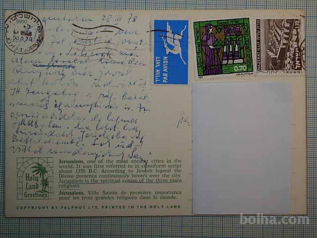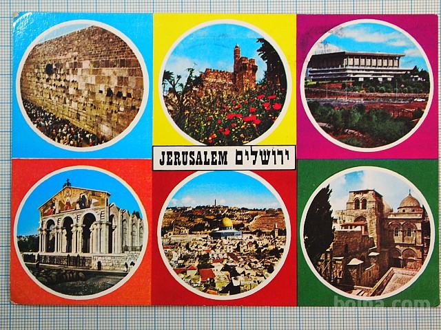 Razglednica JERUZALEM, potovala 1978. - al-Quds) je starodavno bližnjevzhodno mesto s ključnim pomenom v judovstvu, krščanstvu in islamu. Poznano je tudi pod imenoma Davidovo mesto in Sion. Leži v današnjem Izraelu na vzhodnih pobočjih Judejskega višavja, med Sredozemljem in Mrtvim morjem.