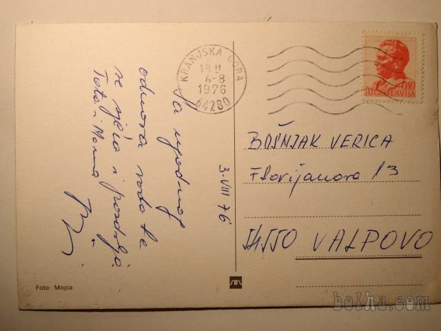 Razglednica KRANJSKA GORA, potovala 1976, z znamko.
