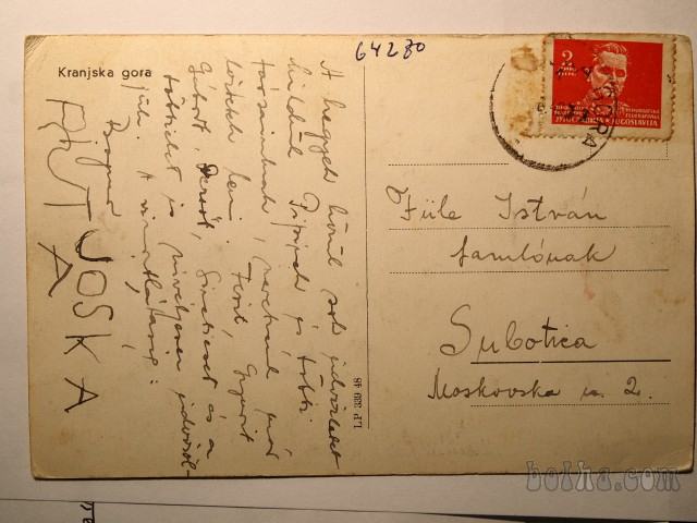 Razglednica KRANJSKA GORA, potovala 1949, z znamko.