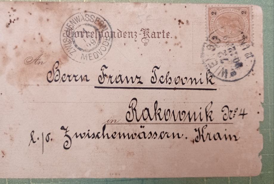 Prodam starinsko razglednico , katera je bila poslana iz Dunaja leta 1899 v Medvode.