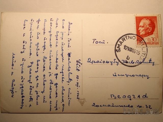Razglednica POZDRAV IZ LITIJE, potovala 1968, z znamko.