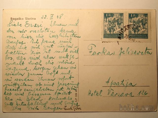 Razglednica ROGAŠKA SLATINA, Zdraviliški dom, potovala 1948, z znamko.