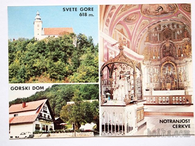Razglednica SVETE GORE, Gorski dom, notranjost cerkve, ni potovala.