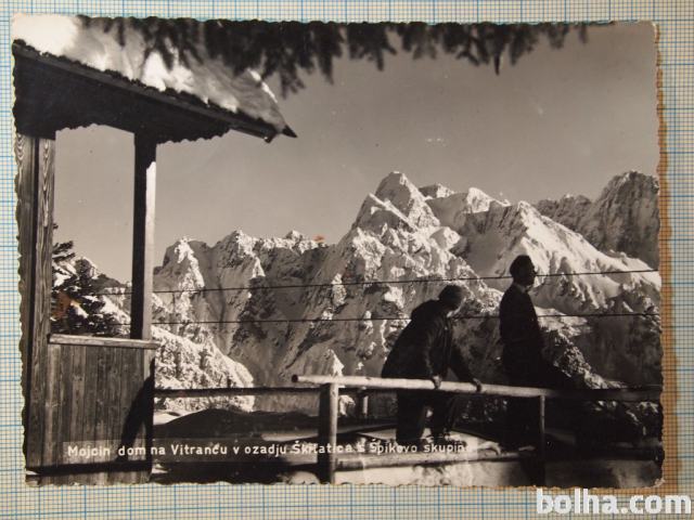 Razglednica MOJČIN DOM NA VITRANCU, v ozadju Škrlaticas Špikovo skupino, potovala 1962.