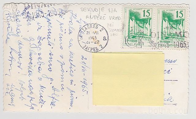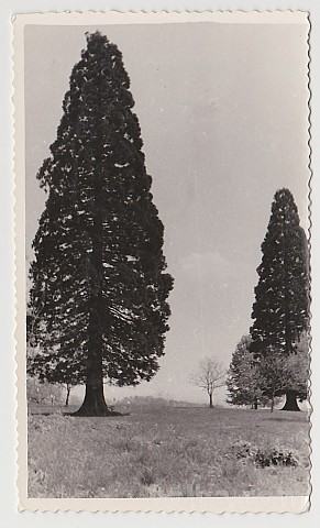 Prodaja se fotorazglednica s slike. Ena od sekvoj na sliki se je posušila in so jo že porezali. Ostala pa je najdebelejša sekvoja v Sloveniji. Kupec plača poštnino.