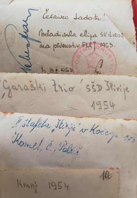 Naprodaj so 4 fotografije smučarjev "ŠD ILIRIJE" iz začetka petdesetih let, od 5 - 10 eur kos.