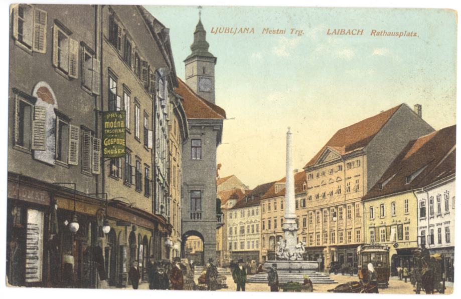 Prodam staro razglednico Ljubljana (Laibach) - Mestni trg (Rathausplatz) iz obdobja Avstro-Ogrske, oddana na pošti Ljubljana 1. 05. 1918. Založil F. M. Schmitt, Laibach.
