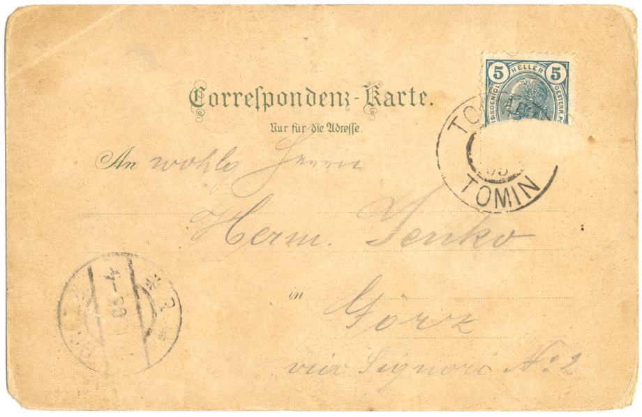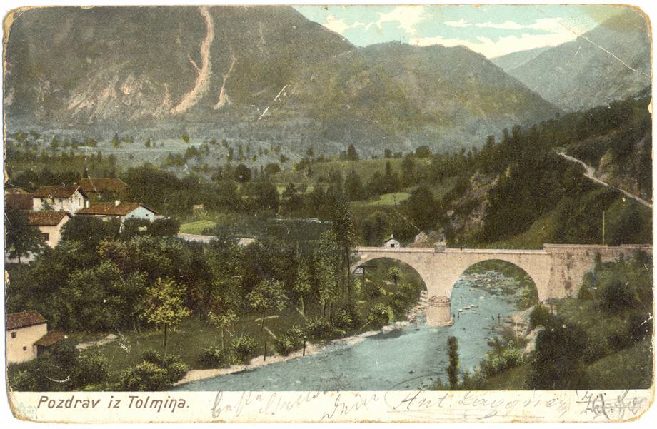 Prodam razglednico TOLMINA iz obdobja Avstro-Ogrske, oddana na pošti Sv. Lucija leta 1905, potovala v Gorico.