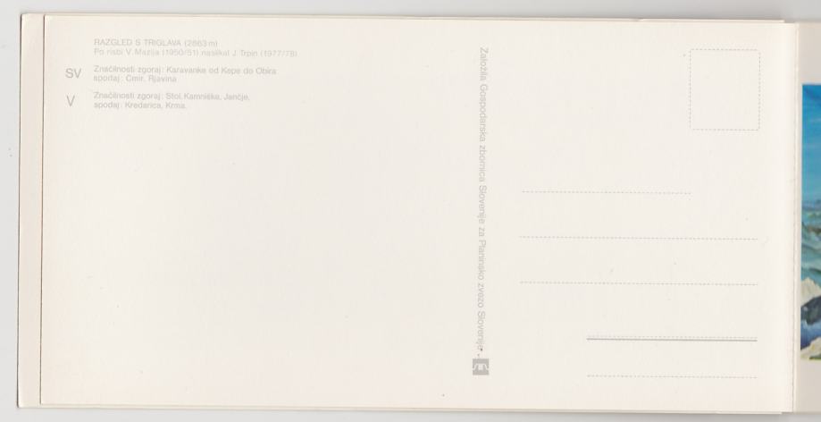PIRAN KREDARICA itd... Po risbi V. Mazija naslikal J. Trpin 1977/78. Prodajajo se v kompletu 4 velike dolge razglednice v originalnem ovitku, še ne odtrgane. Kupec plača poštnino.