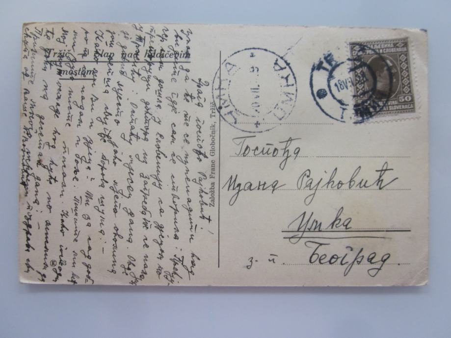 prodam razglednico Tržič - slap nad Hudičevim mostom, je potovala 1929