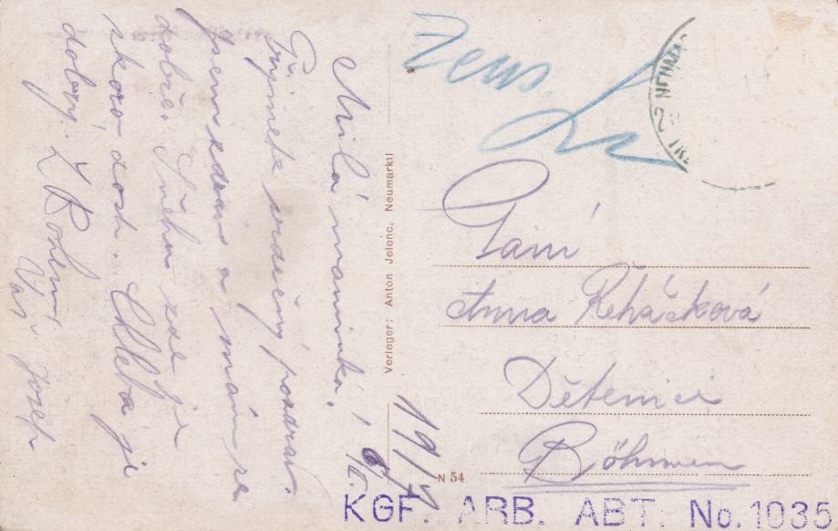 TRŽIČ - Založil A.Jelenc, panorama, žig vojnega ujetnika KGF.ARB.ABT