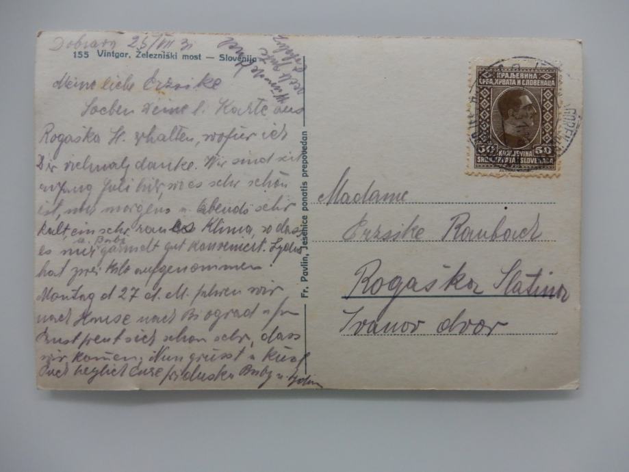 Prodam razglednico Vintgar, potovala 1931