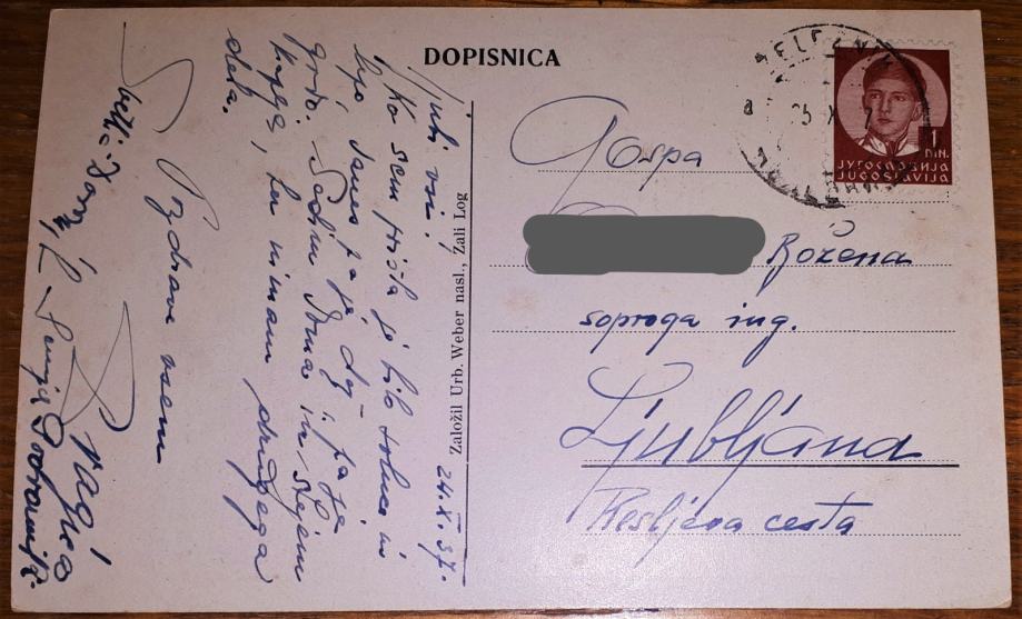 Prodam staro, poslano razglednico Zalega Loga, kot je vidna na fotografijah.