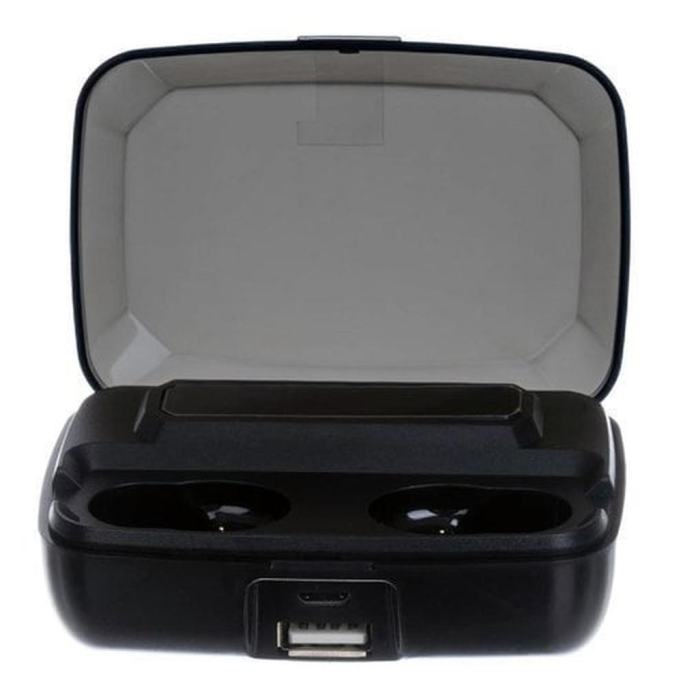 SPECIFIKACIJA – zaslon: LCD; povezava: Bluetooth 4.1; funkcija power bank v ohišju: da; domet: 10 m; baterija slušalk: 50 mAh; powerbank: 2200 mAh; čas polnjenja: 2 h; čas predvajanja glasbe: 6 h; mere: 5,5 / 8,5 / 3 cm; teža: 0,93 kg; teža v paketu: 0,142 kg.