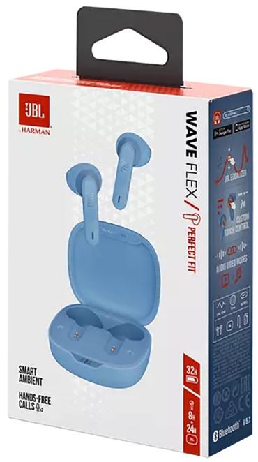 Brezžične Bluetooth slušalke JBL Wave Flex (modre) nudijo vrhunski JBL Deep Bass zvok, jasno komunikacijo preko mikrofona ter ergonomsko udobje za vsakodnevno poslušanje. Odlične za prostoročne klice, glasbo in aktivno uporabo.