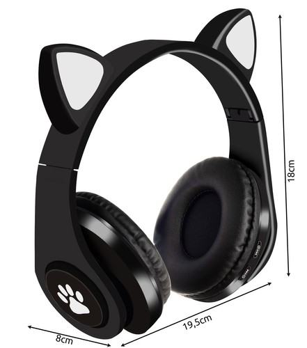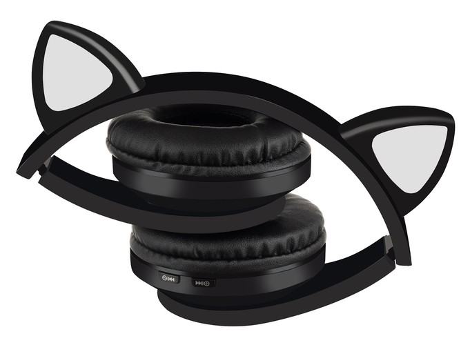 LED OSVETLITEV – slušalke oblikovno spominjajo na mačja ušesa, ki svetijo v beli ali RGB barvi, zaradi česar se bodo vedno prilegle k otroški stilizaciji. Ob straneh glušnikov so sledovi mačjih tačk, ki so tudi osvetljene. Zdaj bo vaš otrok vedno viden na pločniku, tudi ko se zmrači!