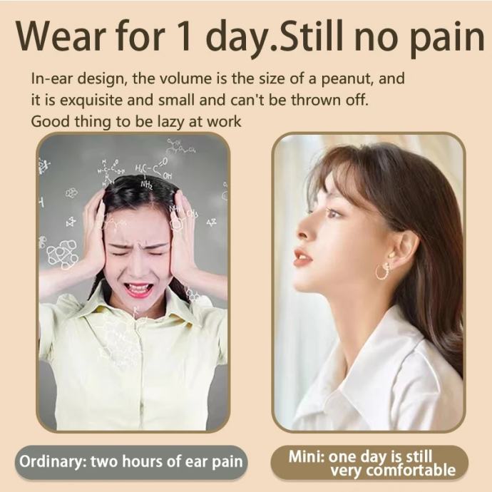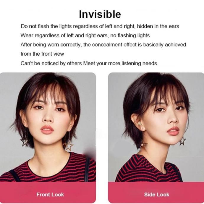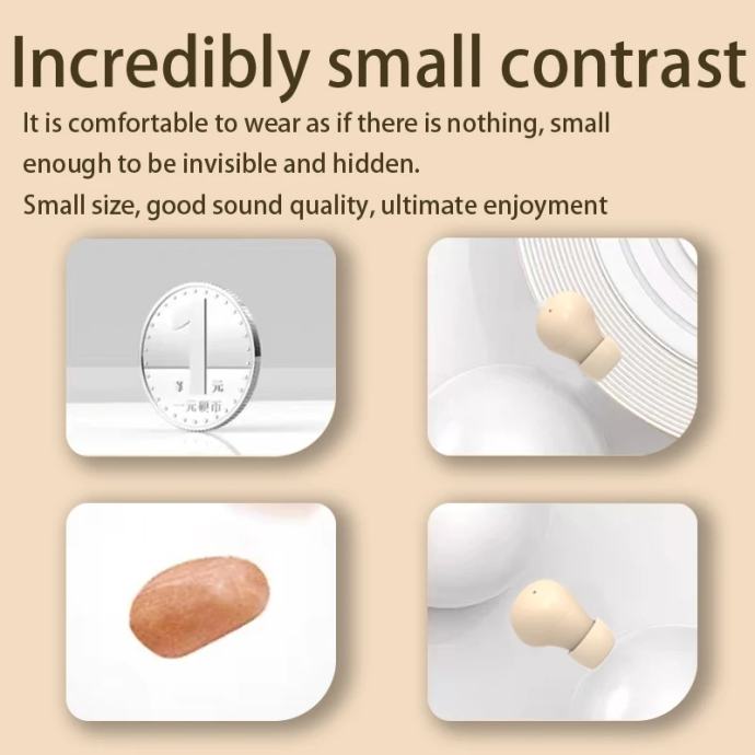Te ultra majhne brezžične nevidne slušalke so peresno lahke, popolnoma nemoteče in praktično nevidne. Oblika ušesnega čepka je zasnovana tako, da se popolnoma prilega vašemu ušesu. Majhni ušesni čepki so udobni za nošenje ne glede dolgotrajnost nošenja. Ko imate slušalke v ušesu, so skoraj neopazne in jih lahko nosite med delom, spanjem ali prostim časom. Te slušalke lahko brez problema nosite ves dan brez, da bi vas začele motiti.