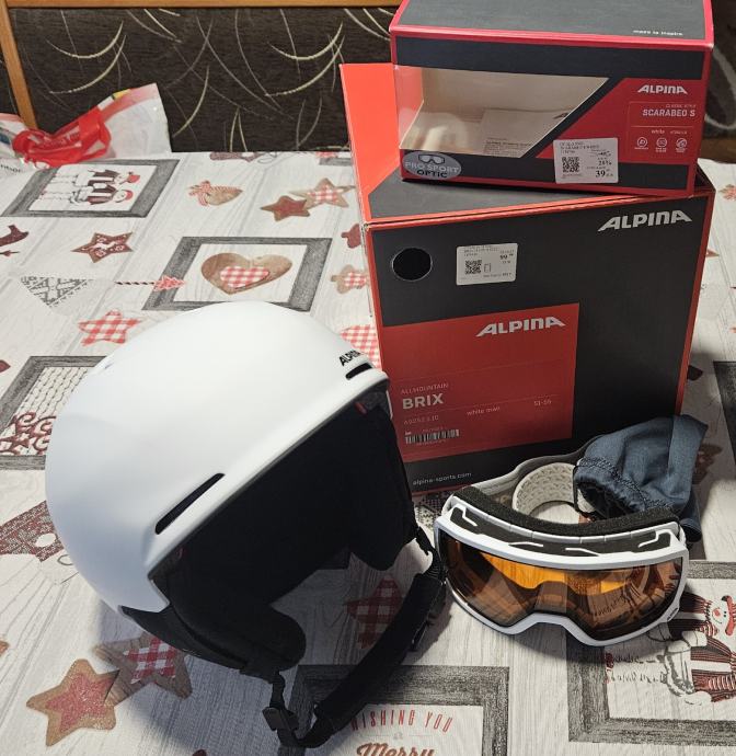 Prodam smučarsko čelado Alpina v beli barvi skupaj s smučarskimi očali.