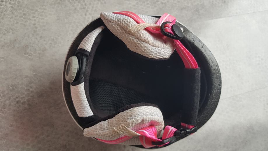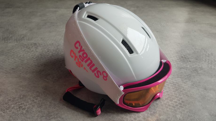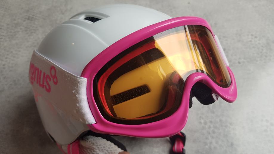 Le nekajkrat rabljena čelada za deklice, velikost XS (52-54) v kompletu s smučarskimi očali. Brez vidnih znakov uporabe, brez odrgnin. Prva lastnica.